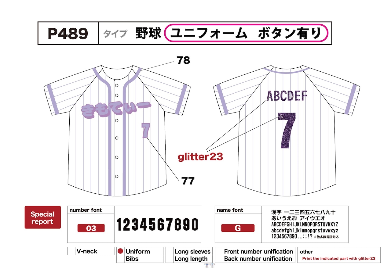 クラスTシャツ 野球ユニフォーム P489 グリッター