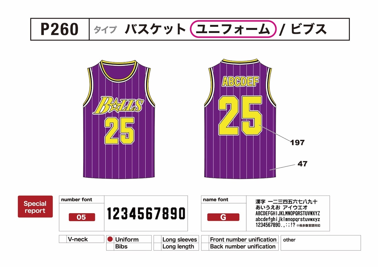 クラスTシャツ バスケユニフォーム P260