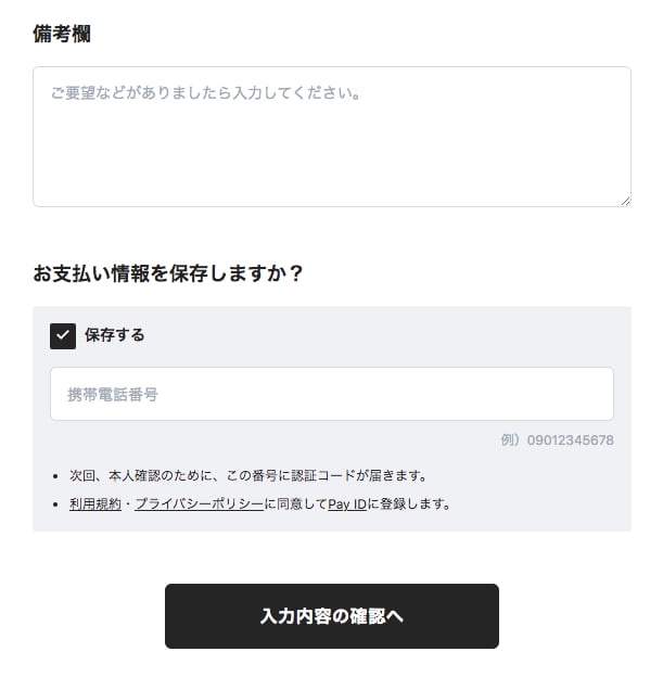 備考欄はお支払い画面で表示されます。