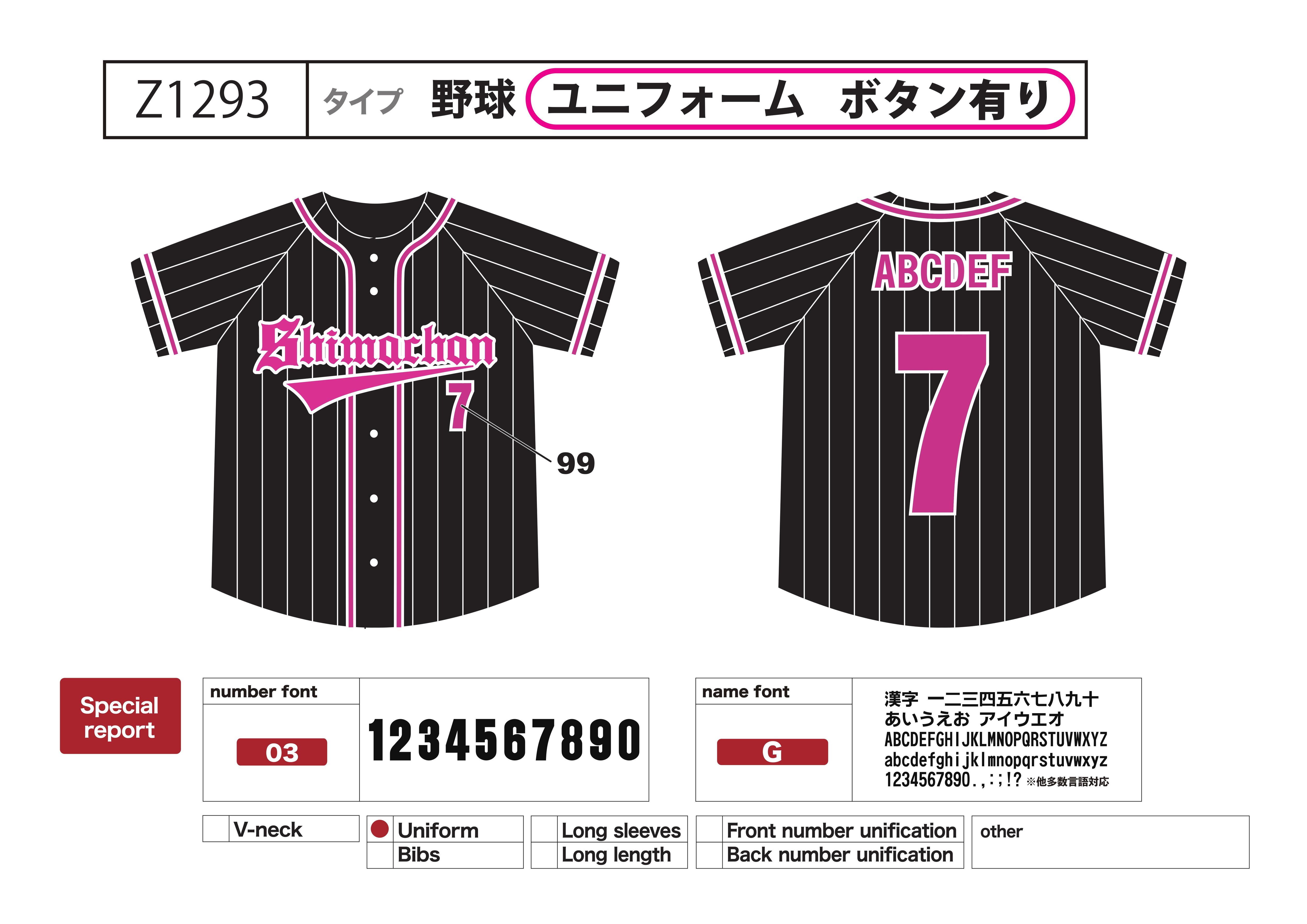 背番号背ネームを入れる方は備考欄にご記入ください(画像参照)
