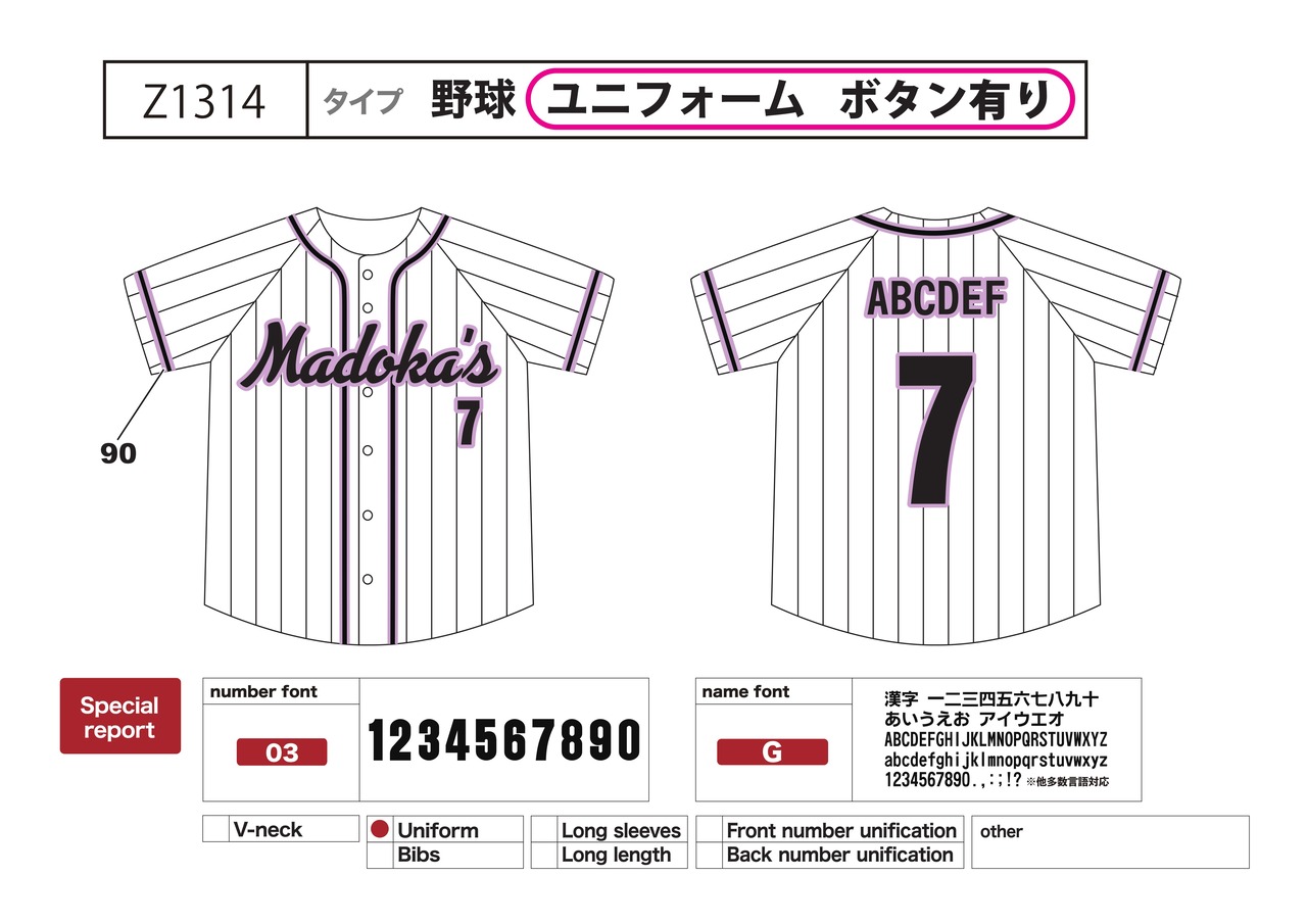 クラスTシャツ 野球ユニフォーム Z1314