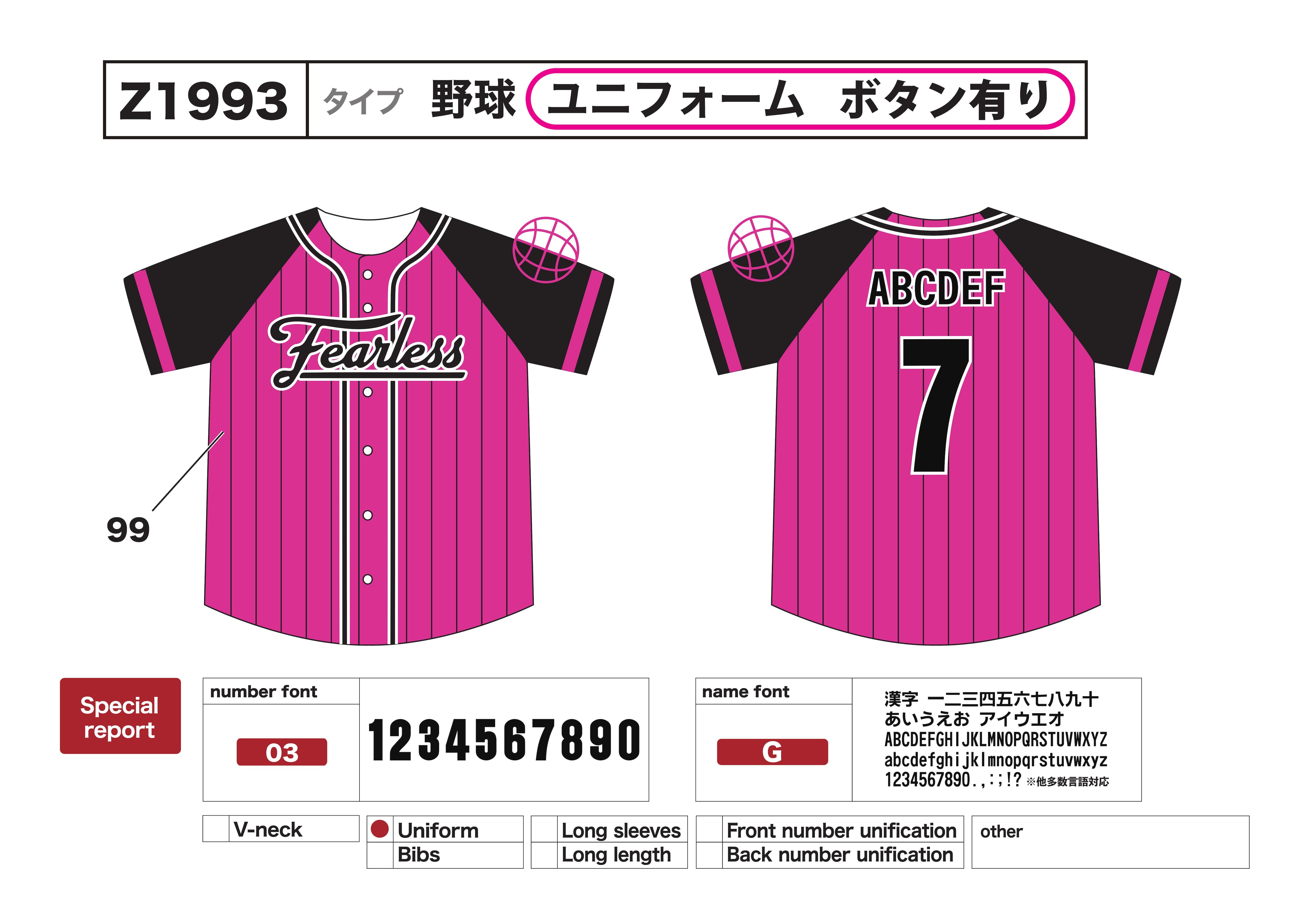 クラスTシャツ 野球ユニフォーム Z1993