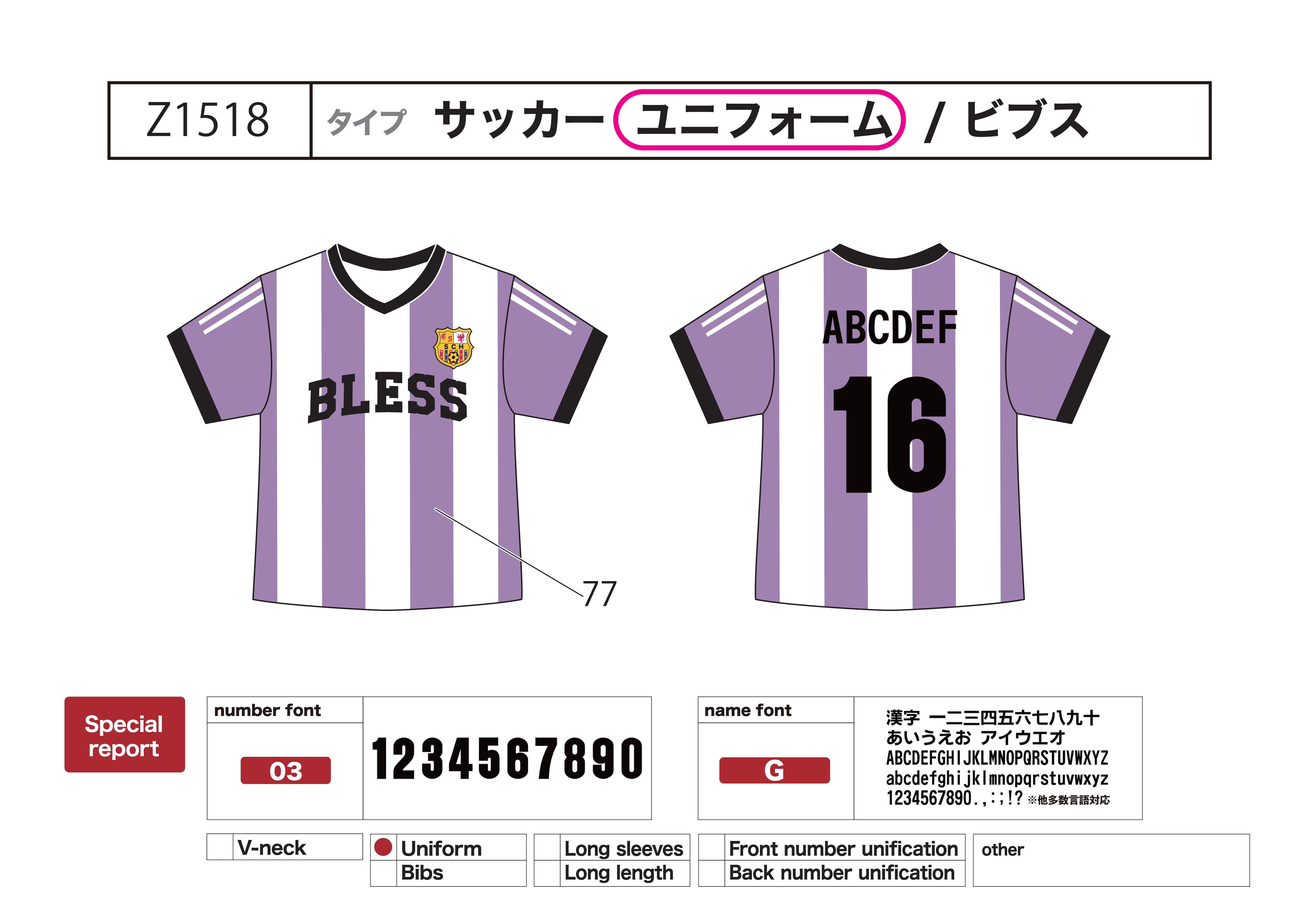 背番号背ネームを入れる方は備考欄にご記入ください(画像参照)