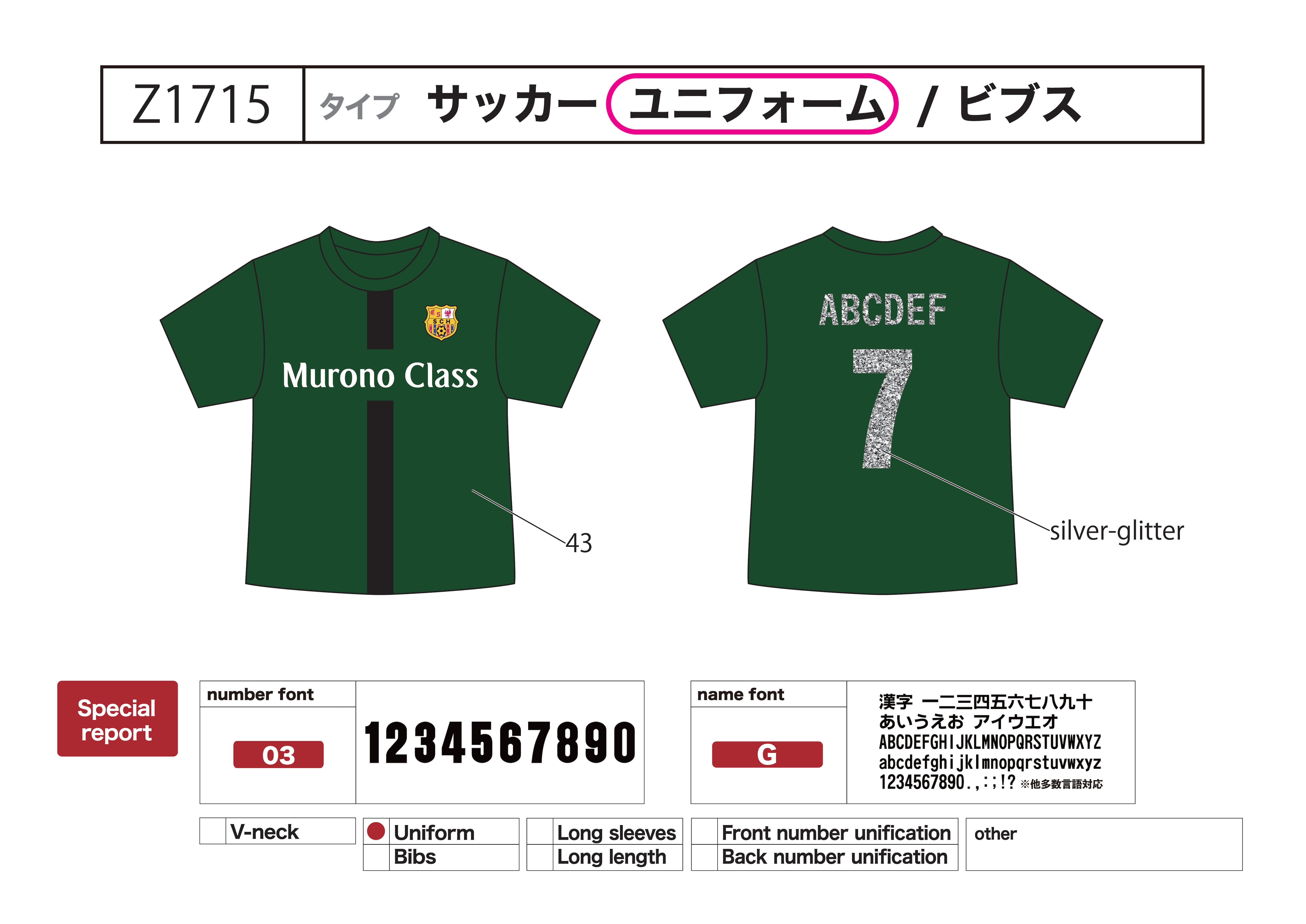 背番号背ネームを入れる方は備考欄にご記入ください(画像参照)