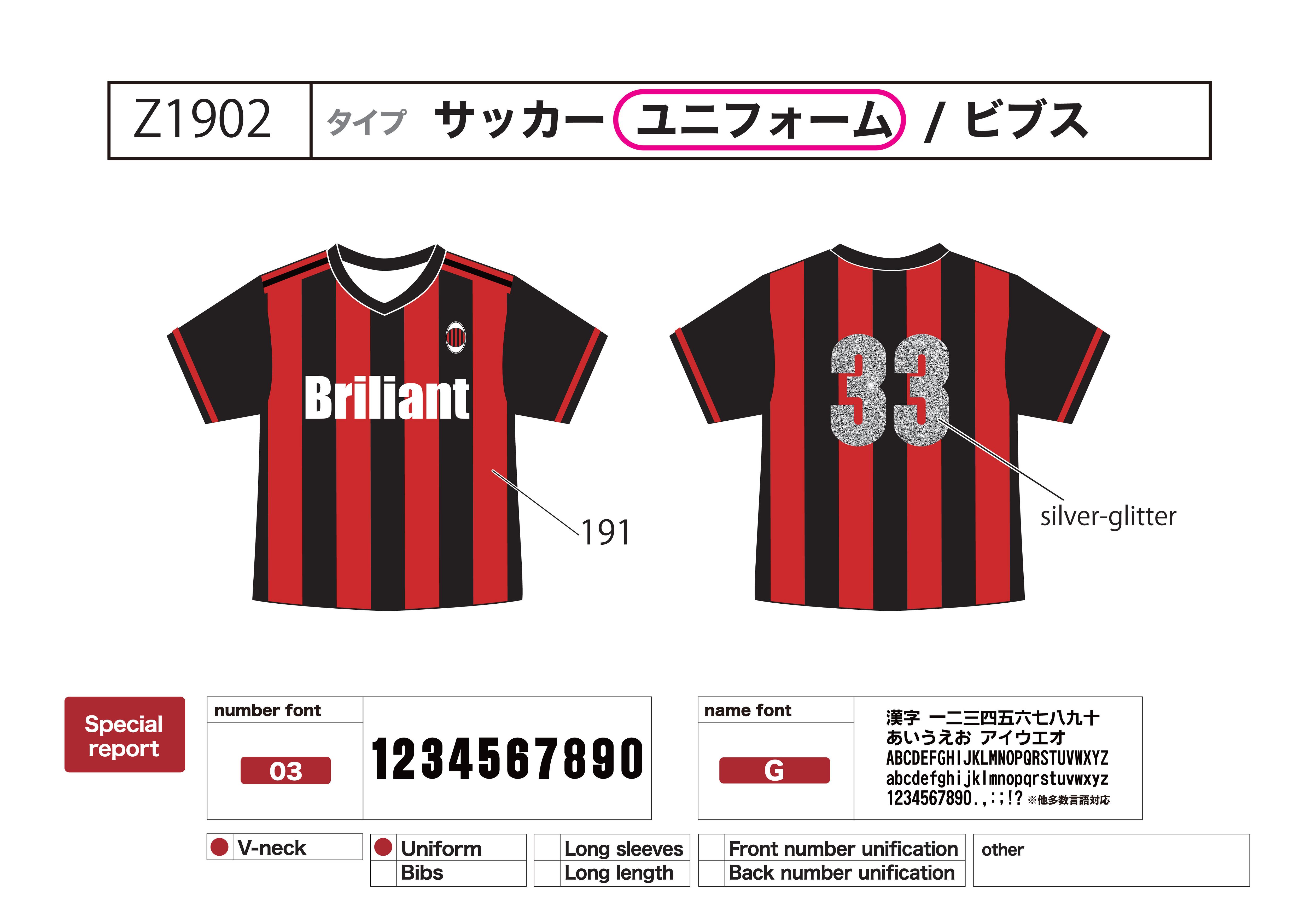 背番号背ネームを入れる方は備考欄にご記入ください(画像参照)